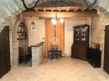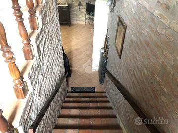 piano terra: ingresso su ampio salone doppio caratterizzato dalla pietra a vista e travatura in legno dal quale sono accessibili tutti i vani del piano terra ed il vano scale. Si trovano quindi la cucina abitabile con camino e ripostiglio, la lavanderia che ospita anche la caldaia, il primo bagno finestrato con doccia, un ampio ripostiglio sfruttabile come studio e/o letto matrimoniale, anticamera e cantina; una scala originale dell'epoca di edificazione, totalmente ripristinata in maniera conservativa in mattoni a vista, porta al piano primo, qui trovano spazio: 3 camere da letto matrimoniali (una delle camere è dotata di attacchi per una eventuale seconda cucina abitabile), un disimpegno, il secondo bagno finestrato con doccia e 3 ripostigli al grezzo.