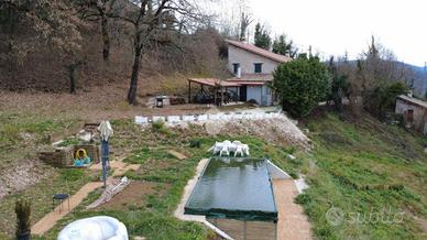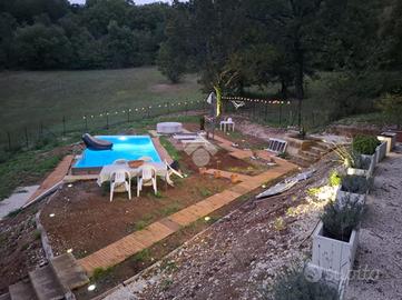 Completa la proprietà una cantina privata di 8 mq accessibile sia dalla cucina che dall'esterno ed un terreno di 2.000 mq, prevalentemente pianeggiante, con piscina.