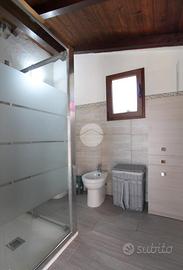 L'unità presenta un ingresso carrabile su ampio terreno agricolo di 3036 mq, parzialmente recintato, dove è presente l'unità disposta su un unico livello.