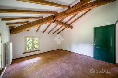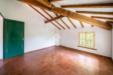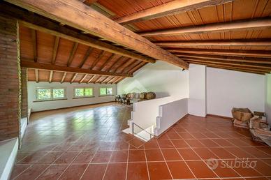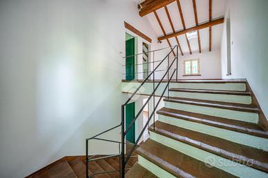 Al piano terra, troviamo un ex stalla adibita a soggiorno con un suggestivo soffitto a volte, tipico delle abitazioni rurali reggiane, mentre, la cucina in muratura invita a momenti conviviali. Al primo piano, tre camere da letto matrimoniali e due bagni (uno privato) garantiscono spazio e privacy. Il secondo piano, mansardato con copertura in lengo a vista, offre ulteriori due camere e uno spazo aggiuntivo, ideali per personalizzare l'ambiente secondo le proprie esigenze.