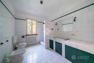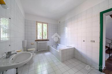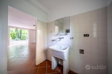Completano la proprietà un ampio garage, con una lavanderia interna (che si può collegare volemndo con il soggiorno al piano terra dell'abitazione) che dispone, al piano superiore, di uno spazio ideale per ricavare uno studio con finestre che affacciano sul giardino privato.