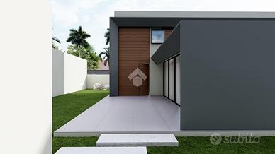 Al piano terra, 115 mq ca, troviamo l'ingresso, la zona living a vetrate, una cucina/sala da pranzo, un bagno e una dispensa.