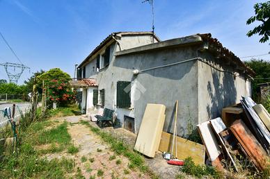 Rimini Zona Gaiofana Proponiamo casa indipendente con ampio lotto di terreno in zona molto tranquilla e immersa nel verde a pochi chilometri a rimini. L'immobile sorge su un lotto di circa 600mq e allegato a un terreno agricolo di 1500mq. Entrando dell'immobile al piano terra troviamo il soggiorno con angolo cucina, due camere da letto e un bagno finestrato con doccia. Salendo le scale che portano al primo piano abbiamo accesso ad altre due camere da letto e un bagno finestrato. staccato dallo stabile principale è presente un ripostiglio adibito a cantina di grandi dimensioni e un box di 26mq. E possibile acquistare anche altri 1400mq di terreno agricolo adiacenti all'immobile.