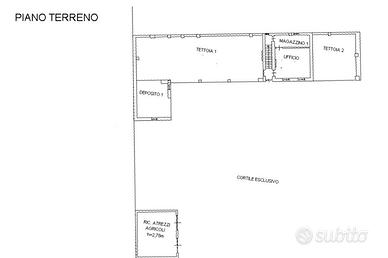 Al piano terra sono presenti diversi locali che possono essere convertiti in spazi abitativi. La scala interna conduce al primo piano dove sono presenti altri due locali.