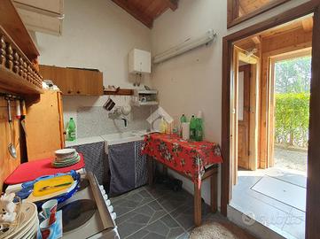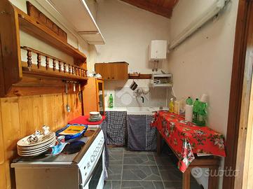 L'immobile risulta così composto: si accede da un portico ristrutturato al locale soggiorno con camino; proseguendo giungiamo al pratico cucinotto con annesso piccolo bagno con solo i servizi igienici ed una legnaia utilizzata come ripostiglio. Al piano di sopra si trovano due locali ampi e le scale per il sottotetto (ed il tetto) ristrutturato.