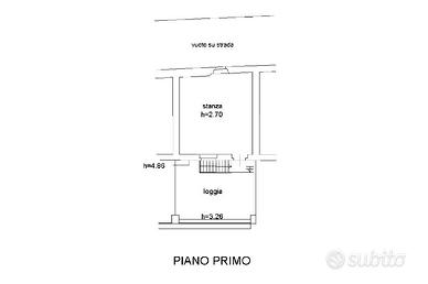 * Primo piano: Accesso tramite scala esterna, loggia di circa 30 mq e seconda stanza di 40 mq