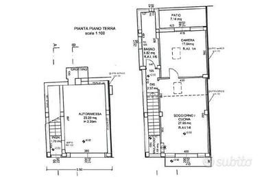 La casa è distribuita su due piani: al piano terra troviamo il garage privato di 33mq, mentre al piano primo si sviluppa il bilocale.