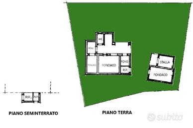 L'edificio, in condizioni fatiscenti, si estende su una superficie di circa 70 mq, tra un seminterrato e un piano terra. L'area esterna abbraccia invece 330 mq.