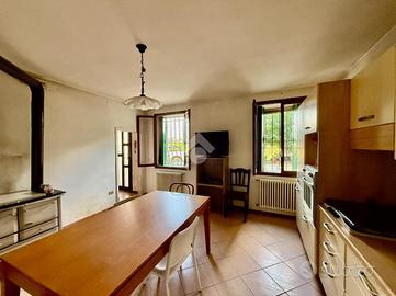 Sul lato dell'abitazione si raggiungono gli annessi rustici con vecchia stalla, fienile, cantina e ricovero attrezzi da ristrutturare.