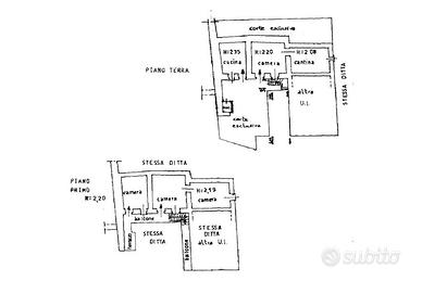 Il primo immobile, allo stato originale, è composto al piano terra da cucina, una camera, cantina e bagno esterno, tramite scala esterna si raggiunge il piano primo composto da tre camere da letto.