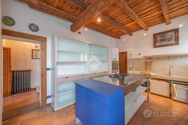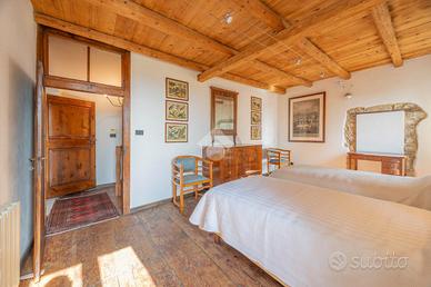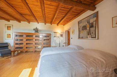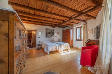 Ma è al secondo piano che questa casa svela tutto il suo fascino: un ambiente open space con vetrate panoramiche, perfetto come zona living, studio o sala lettura con la possibilità di essere utilizzata come ulteriore stanza da letto. Qui la vista sulle colline circostanti regala un senso di pace difficile da trovare altrove.
