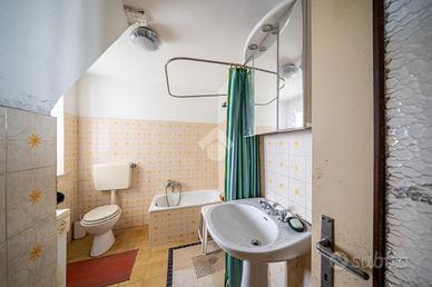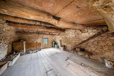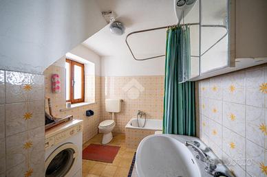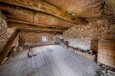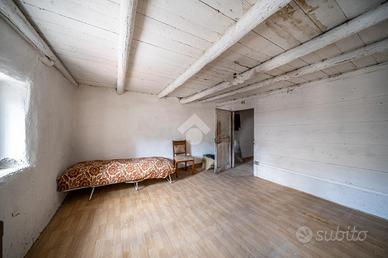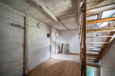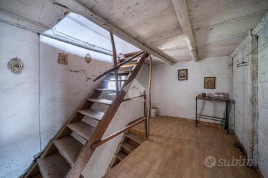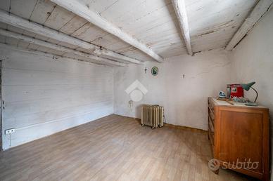 La soluzione si compone al piano terra di una cucina e di un servizio finestrato con doccia e vasca; il primo e secondo livello sono composti di due camere da letto per piano, l'ultimo livello ospita la soffitta. A completare la soluzione troviamo l'ampia corte di proprietà e la cantina con arco a volto. Tutti i locali godono di doppia esposizione, rendendo così gli ambienti luminosi.