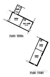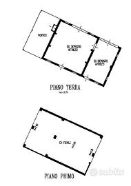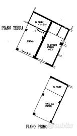 L'abitazione si sviluppa su due piani ed è divisa in due unità. La prima si compone di ingresso, tinello, cucinotto, soggiorno, e cantina al piano terra; 4 camere da letto, disimpegno e bagno al piano primo; con annessa autorimessa doppia. L'altra unità si compone di soggiorno con angolo cottura, cantina e bagno al piano terra; 2 camere al primo piano; con annesso deposito. Completa il fabbricato un porticato a doppio volume e un magazzino.