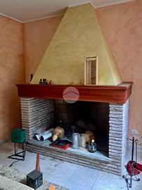 Al piano interrato è presente un ampio open space. Sono presenti un salone con un grande caminetto, la cucina ad isola, una camera ed un bagno di servizio.