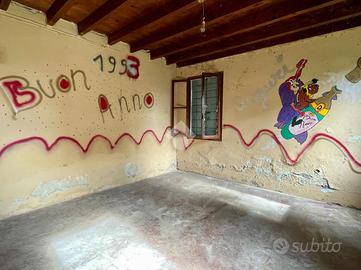 La casa si sviluppa su due livelli. Al piano terra si trovano un ingresso, una cucina separata dalla zona giorno, una cantina, un bagno e una spaziosa rimessa, originariamente adibita a stalla, oggi con molteplici possibilità di utilizzo. Al primo piano sono presenti due stanze e un ex fienile, attualmente trasformato in sottotetto, che offre ulteriori potenzialità di recupero e personalizzazione.