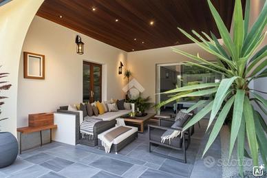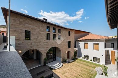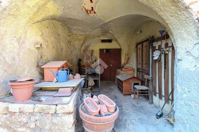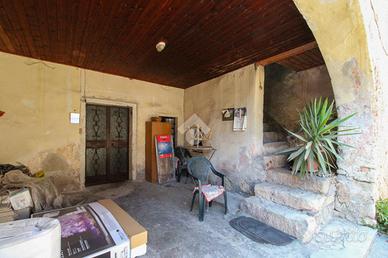 Varcando il cancello, entriamo all'interno del cortile comune ai tre diversi immobili. Il piano terra è costituito da due grandi portici che permettono l'accesso ai locali adibiti a cantina e al piano primo, composto da più locali di ampie metrature.