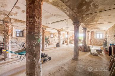 Il fabbricato principale conserva tutte le caratteristiche tipiche delle case di campagna, come il soffitto a voltine, le colonne e il porticato interno, elementi che conferiscono un grande fascino e potenziale alla struttura.