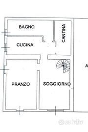 La proprietà si sviluppa su due livelli: al piano terra si trovano un ampio soggiorno, la sala da pranzo, la cucina, la cantina e il bagno.