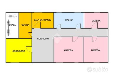 Il piano terra ospita la zona giorno, il piano primo è formato da tre camere da letto mentre il terzo piano è adibito a soffitta con possibilità di ricavare un piano abitabile.