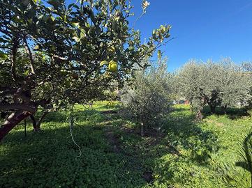 Casa indipendente di 43 mq circa, con 3.000mq circa di terreno di pertinenza piantumato con alberi da frutto ed agrumi, ed accesso diretto su strada da cencello indipendente.