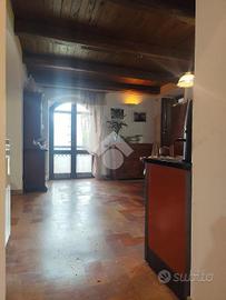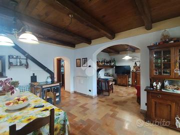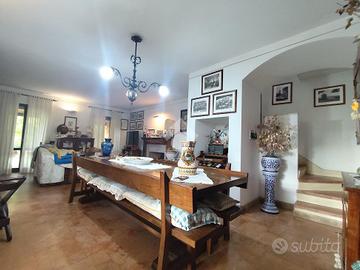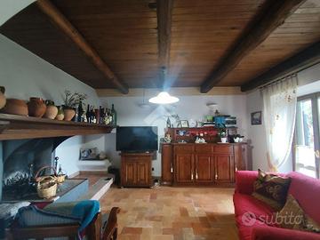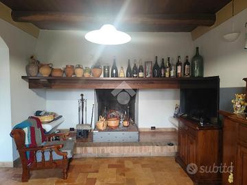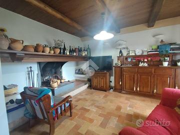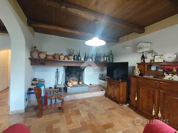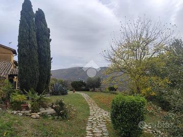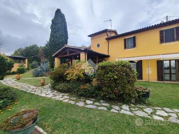 VALTOPINA - LOCALITA' CASA TOMMASO In via Rotondolo, nei pressi di Casa Tommaso, frazione collinare di Valtopina distante 2,5 km circa dal centro del paese, in posizione panoramica ed immerso nel verde dell'Umbria più autentica, incantevole Casolare con dependance circondato da un meraviglioso uliveto e da un terreno agricolo con piante da frutto e piante tartufigene della consistenza di circa 4 ettari. L'abitazione, realizzata negli anni '90 e perfettamente integrata nel paesaggio circostante, si sviluppa su due piani. Al piano terra troviamo l' ingresso, una spaziosa cucina abitabile, un soggiorno con un grande camino, l' ampia sala da pranzo anch'essa con camino, un ulteriore salotto e un bagno con doccia. Al piano terra troviamo anche un comodo garage con accesso diretto. Il piano primo ospita la zona notte composta da due camere matrimoniali, una delle quali con cabina armadio, una camera singola, una grande sala da bagno con doccia ed un ampio terrazzo. La proprietà include una dependance indipendente con monolocale dotato di bagno al piano terra (20 mq circa) e una splendida loggia/terrazzo panoramica (20 mq circa) al piano superiore, perfetta per i momenti di relax con vista sulla valle. Ogni dettaglio custodisce il fascino di un'epoca passata: la pavimentazione in mattoni di cotto, calda e avvolgente, dialoga con i travi e i solai in legno a vista, testimoni silenziosi della sapienza artigiana. Le porte in noce massello e le finestre in legno con doppio vetro uniscono eleganza e comfort, lasciando entrare la luce morbida che accarezza gli ambienti. Nelle camere da letto, il parquet di pregio aggiunge un tocco di intimità e raffinatezza. Questo casolare racchiude in sé l'essenza dei tipici casolari umbri, autentici e accoglienti, dove la tradizione incontra la bellezza naturale del paesaggio. Un luogo dove riscoprire silenzi, tramonti e panorami che incantano l'anima. Un luogo che unisce spazio, comfort e charme rurale, ideale come residenza privata,