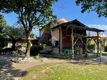 Proponiamo in vendita villa singola stile country, ristrutturata nel 2011 con ampio giardino situata, immersa nel verde e lontana dal traffico, ma al contempo non lontani dai centri cittadini di Trivignano e Martellago, dove si possono trovare: supermercati, tabacchini, scuole, panifici, pizzerie, ristoranti e inoltre fermate degli autobus per il raggiungimento di Mestre. L'abitazione, caratterizzata da finiture ricercate e di pregio, è così composta: ingresso su ampia zona giorno con cucina americana, soggiorno, zona pranzo e zona relax. l'intero spazio si sviluppa su di una superficie di 80mq al piano terra in un unico ambiente aperto e travato a vista, il quale si contraddistingue per le ampie finestre che si affacciano sul giardino, creando un continuum tra interno ed esterno, il tutto arricchito da un caminetto in pietra e dalla presenza di un tronco d'ulivo posto al centro attorno al quale sale la scala circolare di ferro battuto che conduce al piano superiore. Sempre al piano terra sono presenti, inoltre, due camere matrimoniali con accesso diretto anche dal giardino, ognuna della quali è dotata di bagno privato al suo interno. Al piano superiore è presente un'altra camera matrimoniale con annessa cabina armadio e bagno finestrato di 20mq con doccia e doppio lavandino. Completa l'immobile lo scoperto privato di circa 3500mq.