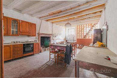 Varcata la porta d'ingresso, al primo piano, ci troviamo nella cucina separata dotata di camino in muratura, ben illuminata da porta finestra che accede all'ampia terrazza di proprietà.