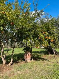 Vendesi terreno in piano di 2,5 ettari con olivi secolari e rustico su due piani. Piano terra magazzini asciutti e ben tenuti (90mq) e primo piano abitazione (90mq) ben conservata come in origine con pavimenti in cotto. È abitabile. Si trova vicino ad un piccolo centro abitato a 15km dal mare. È ben esposto verso il mare quindi gode di sole e luce tutto il giorno.
