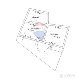Nella parte alta della proprietà si trova il casale con vista panoramica, composto da tre grandi vani, cucina, wc ed un ripostiglio; vicino si trova la dependance con wc.