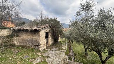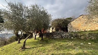 La soluzione si sviluppa su un terreno di circa 1.400 mq, in parte pianeggiante e in parte dolcemente terrazzato, arricchito da un suggestivo uliveto che dona fascino e autenticità all'intera proprietà. I fabbricati, attualmente allo stato di rudere, conservano elementi originali in pietra locale e rappresentano una straordinaria opportunità di recupero edilizio per chi desidera realizzare una residenza indipendente, una casa di campagna o una piccola struttura ricettiva dal sapore rustico.