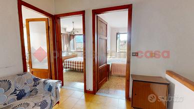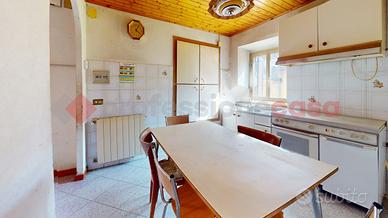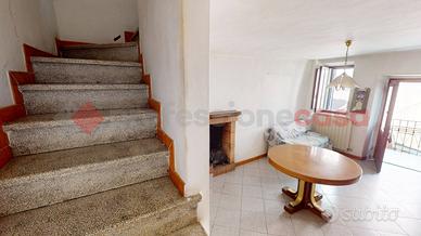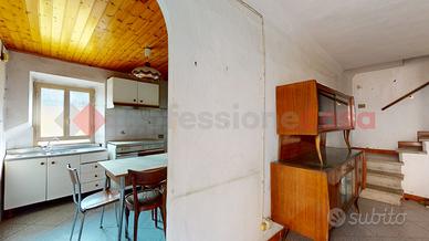 Il terratetto si compone di due camere da letto, un soggiorno luminoso, una cucina abitabile e una sala da pranzo, con un bagno completo di vasca e un balcone che affaccia sul borgo. Al piano terra, un doppio locale ad uso cantina offre spazio aggiuntivo, mentre un ripostiglio esterno con bagno di servizio completa la proprietà.