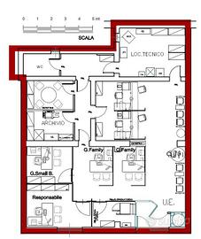 La porzione immobiliare presenta una conformazione planimetrica regolare, è contraddistinta da un ampio salone dove sono ricavati, emdiante l'utilizzo di pareti mobili, 3 uffici singoli, una zona di back-office con locale ad uso archivio e un vano tecnico.