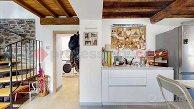 L'immobile dispone di un accogliente camino, ideale per serate invernali, e di un giardino privato dove potersi rilassare all'aria aperta. Le due camere da letto offrono comfort e privacy, mentre la cucina a vista e il soggiorno doppio creano un ambiente conviviale e luminoso. I serramenti in massello con doppi vetri garantiscono un ottimo isolamento termico e acustico.