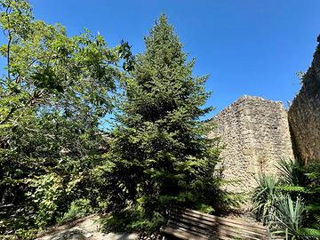 Al primo piano veniamo accolti da un soggiorno con caratteristico camino e tetto a vista in legno, cucina abitabile, due stanze pluriuso e bagno, il tutto servito da vari terrazzi e giardino circondato dalla cinta muraria della città.