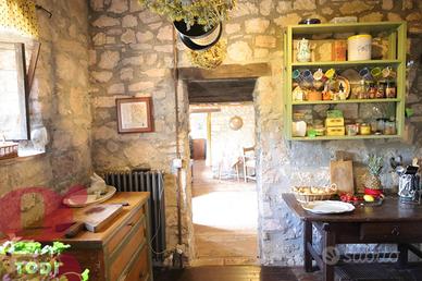 Splendida antica ABBAZIA restaurata, con annessa piccola cappella e CASA in PIETRA: un vero e proprio RIFUGIO nel cuore verde dell'Umbria, circondato da oltre 230Ha di BOSCHI e PASCOLI.