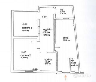 La metratura interna attuale è di circa 70 mq, su una superficie totale del lotto di 86 mq.