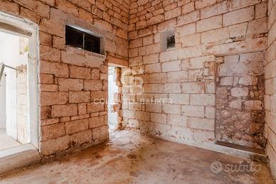 Una parte della casa con volte a stella in pietre bianche è in fase di ristrutturazione, pavimento in gres porcellanato, dispone di ulteriori vani con volte a gavetta ed a gavetta lunettate in stato grezzo, come anche il grande deposito, grezzo ma con volta in legno, da ristrutturare.