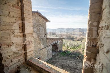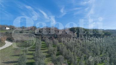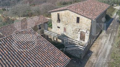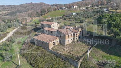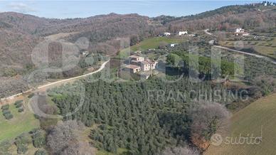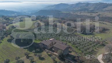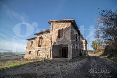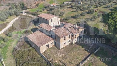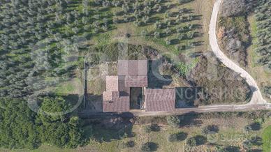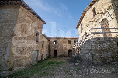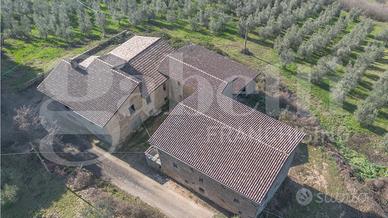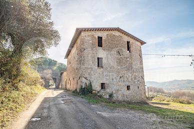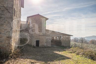 PODERE MONTEVERDE Immerso nella splendida campagna umbra, in località Monteverde, questo affascinante casale si distingue per la sua posizione panoramica e strategica, a breve distanza dai centri storici di Perugia, Assisi e Valfabbrica, offrendo un perfetto equilibrio tra tranquillità e comodità. La proprietà, di circa 800 mq complessivi, nasce dall'unione di tre corpi di fabbrica indipendenti, realizzati in epoche diverse, ciascuno dei quali conserva i tratti autentici dell'architettura rurale umbra: travi in legno a vista, murature in pietra e archi in mattoni. Il nucleo originario risale alla fine dell'Ottocento, mentre gli altri volumi sono stati edificati intorno alla metà del Novecento. Tutte le coperture sono state recentemente ristrutturate, garantendo solidità e affidabilità strutturale. Attualmente il casale si presenta allo stato grezzo: il corpo più antico richiede interventi di consolidamento dei solai, mentre gli altri edifici sono pronti per essere completati internamente. Questa condizione rappresenta un'opportunità ideale per personalizzare gli spazi secondo le proprie esigenze, sia in termini di distribuzione che di destinazione d'uso. La configurazione su più livelli e la grande flessibilità degli ambienti rendono la proprietà particolarmente adatta sia come residenza privata di prestigio -- con possibilità di realizzare più unità indipendenti -- sia come investimento turistico-ricettivo, perfetto per agriturismo, bed & breakfast o struttura di charme. Il casale è circondato da un suggestivo oliveto di circa 4.400 mq, elemento distintivo del paesaggio umbro che contribuisce a valorizzare ulteriormente la proprietà. È inoltre possibile acquistare separatamente ulteriori appezzamenti di terreno coltivati a uliveto, per un totale di circa 750 ulivi in produzione, offrendo così un'interessante opportunità anche sotto il profilo agricolo e imprenditoriale. La strada di accesso può essere facilmente modificata pe