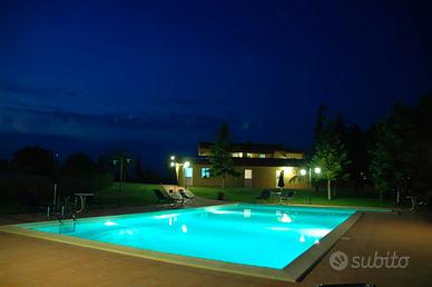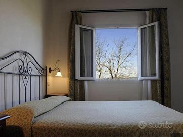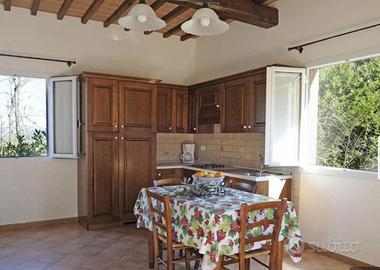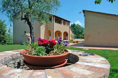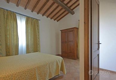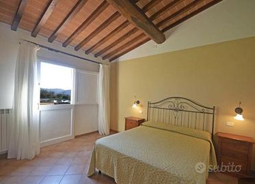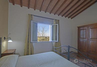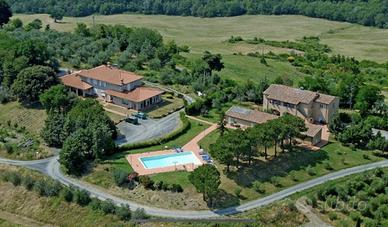 Bellissima casa vacanze immersa nelle colline toscane composta da nove bilocali di circa 50 mq l'uno completamente ristrutturati con finiture in stile toscano. Ogni appartamento è composto da una zona giorno con cucina e divano letto, una camera matrimoniale e un bagno. Completa la proprietà una piscina circondata da vegetazione mediterranea. Possibilità di affittare 6 ettari di terreno circostante per eventuale espansione ad agriturismo.