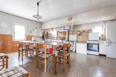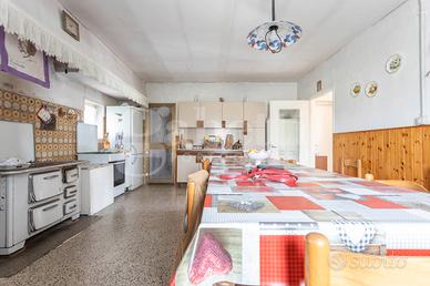 L'intero fabbricato, che necessita di una profonda ristrutturazione ed implementazione a livello impiantistico, si costituisce da una porzione abitativa su tre livelli per complessivi 350 mq, mentre le pertinenze, un tempo ad uso agricolo e costituite dalla stalla, dal fienile e da uno spazio destinato al ricovero attrezzi sviluppano ulteriori 350 mq circa.