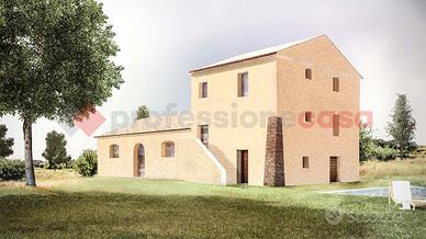Il render rappresenta una visione realistica di come potrebbe apparire il casale dopo l'intervento di ristrutturazione.