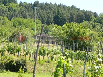 Il casolare è circondato da 4000 m2 di terreno, direttamente accessibile dall'aia e in parte adibito alla coltivazione di frutta (meli, fichi, viti, noci, noccioli, ulivi), incluso nel prezzo di vendita.