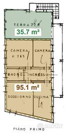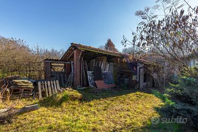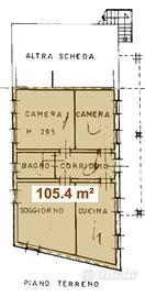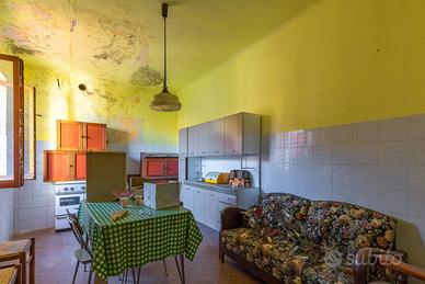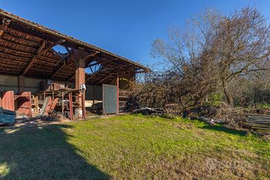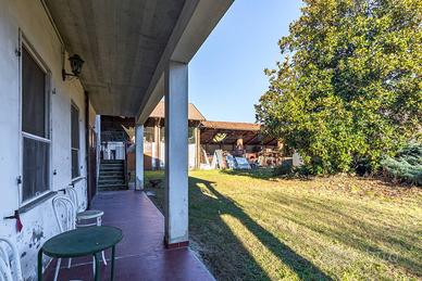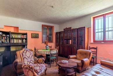 Ledificio principale si sviluppa su due livelli ed è attualmente suddiviso in due appartamenti indipendenti di circa 100 mq ciascuno ed il piano superiore è servito da scala esterna. A lato del fabbricato si trovano un locale deposito e, al piano superiore, un ampio fienile. Sul lato destro della corte è presente un ulteriore ampio fabbricato, anchesso ad uso deposito, articolato su due piani.