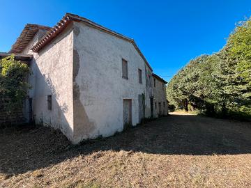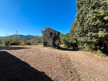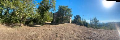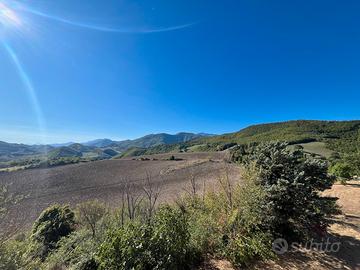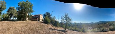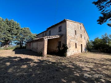 ID372. Si vende compendio immobiliare composto da rustico di grande metratura disposto su 4 livelli oltre ad adiacente abitazione su due livelli, circondato da 3 depandance che insistono sullo stesso giardino comune. La proprietà da ristrutturare può essere utilizzata come attività ricettiva, agriturismo, B&B, villa esclusiva, azienda agricola. Il compendio è posizionata sul culmine di un crinale pertanto regala panorami mozzafiato a 360 gradi. Esiste la possibilità di acquistare terreni sino a 17 ettari con un prezzo di euro1,5 al metro quadrato.