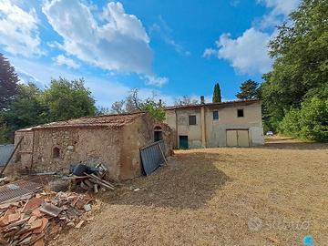 Casa colonica di mq 300 formata da tre appartamenti indipendenti, uno composto al piano terra da ingresso, ripostiglio, cantine, autorimessa e al primo piano cucina con camino, soggiorno, tre camere, bagno, ripostiglio, gli atri due più piccoli, uno al piano terra con cucina pranzo, camera e bagno, l'altro al piano primo con cucina pranzo, camera e bagno, annessi vari e terreno 20000 mq, posizione collinare, ottimo accesso.