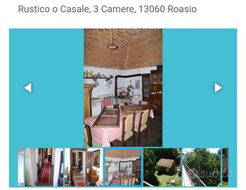 Casale costruito nel 1837 ed ampliato nel 2012, realizzato totalmente in muratura di mattoni pieni è suddiviso in tre piani con soffitta . Sviluppa circa mq. 70 per piano + 40 mq. di soffitta divisa in tre locali con h. 2,30 L'edificio insiste su 560 mq. in parte recintato a giardino di 320 mq. con tettoia parzialmente chiusa di 25 mq. + 135 mq. di corte esterna con tettoia per il ricovero autovetture di circa 25 mq. e un piccolo deposito- legnaia; inoltre ci sono 880 mq. di frutteto e 170 mq. di bosco.