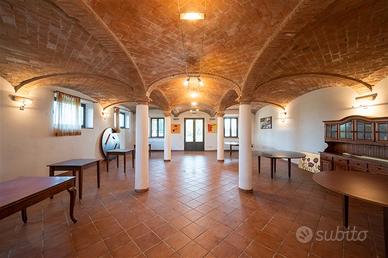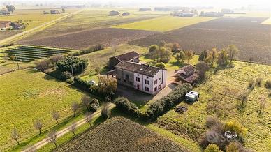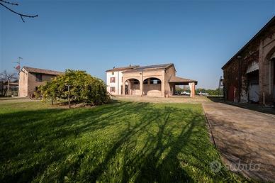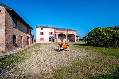 Fontanellato, a pochi Km dal paese, proponiamo in vendita compendio immobiliare costituito da ampio casale ristrutturato con ex stalla con porticato e porta morta, barchessa con fienile e porticato, fabbricato adibito a magazzino e locale deposito, altro fabbricato adibito a dispensa magazzino con bagni. La proprietà è completata da un parco di circa 3.000 mq recintato ed ampio parcheggio interno. A pochi chilometri dal centro abitato e dalla Rocca di Fontanellato questo immobile risalente ai primi anni del Novecento è un esempio tipico di integrazione in modo armonico tra territorio e architettura e come dal loro incontro si generi bellezza. Natura e presenza umana si fondono in un abbraccio per dare vita a un'estetica propria creando un architettura rurale storica che mantiene nel tempo ed esalta le caratteristiche delle case in mattoncini. La cascina è un tipico complesso di fabbricati emiliani risalente al 1912 e ristrutturata nel 2002 ponendo attenzione ad esaltare e valorizzare i materiali dell'epoca. Situata in un contesto paesaggistico di assoluto charme e di assoluta tranquillità lontano dal traffico, offre la possibilità di trascorrere piacevoli momenti nell'ampio parco di proprietà costituito da una vasta distesa di verde perfettamente curata a prato con possibilità di realizzare una piscina. Nel 2002 vi è stato un prezioso intervento di restauro che esaltando il fascino senza tempo di a questa tradizionale dimora di campagna ha voluto abbinare la possibilità di ricavarne un attività e l'ha trasformata in agriturismo che, tuttavia potrebbe essere adattata anche ad altre soluzioni lavorative considerando i vasti spazi interni ed esterni di cui dispone . Dall'ingresso principale e tramite un lungo viale alberato ed inghiaiato accediamo al caseggiato principale composto al piano terra da ingresso / porta morta, ex stalla con colonne e volte a vela adibito in precedenza a sala ristorante con porticato esterno, cucina, dispensa, ripostiglio, bagno