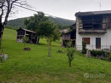 Porzione di testa di mq 160 (compresa soffitta) e con tettoia esterna di mq 18 ed adiacenti mq 1060 di terreno di proprieta'. L' immobile e' da ristrutturare.E' possibile l' ampliamento sino a 800 mc. Si trova in una piccola borgata del comune di Arsie' denominata Ciaor . Classe energetica G.