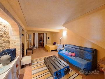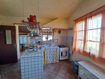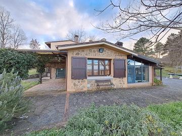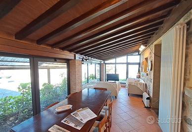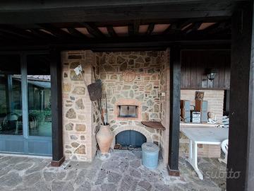 Rustico in posizione panoramica, 120 mq, struttura articolata molto bella, composto da cucina pranzo, veranda, taverna, studio, bagno, cantina, forno, legnaia con vasca idromassaggio, locali, tecnici, barbecue e ampi loggiati con meravigliosa vista sulla vallata, tutto al piano terra, al piano primo 2 camere, permesso a edificare altra camera con bagno, 13000 mq di terreno con piante di alto fusto, oliveto, prato, pozzo oltre ad acquedotto, doppio impianto di riscaldamento Caldaia a Gpl e Caldaia a Pellet.