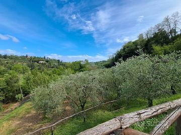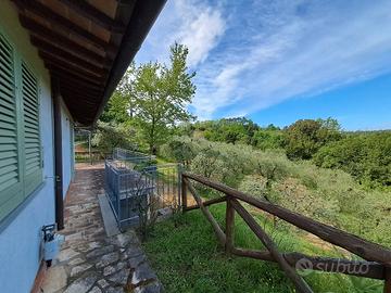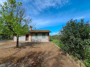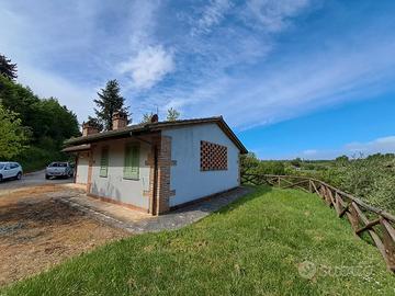Casale in bella posizione panoramica, 100 mq e 4 ettari di terreno, al piano terra soggiorno cucina, 2 camere, bagno, al piano seminterrato h 240 cm, grande cucina, bagno, magazzino, il terreno 4 ha è coltivato a oliveto 150 piante, prato, bosco.